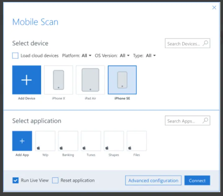 Erstellen Sie schnell mobile Tests und verwenden Sie diese als Bausteine der End-to-End-Testszenarien für native, hybride Apps oder mobile Websites auf iOS- und Android-Geräten.
