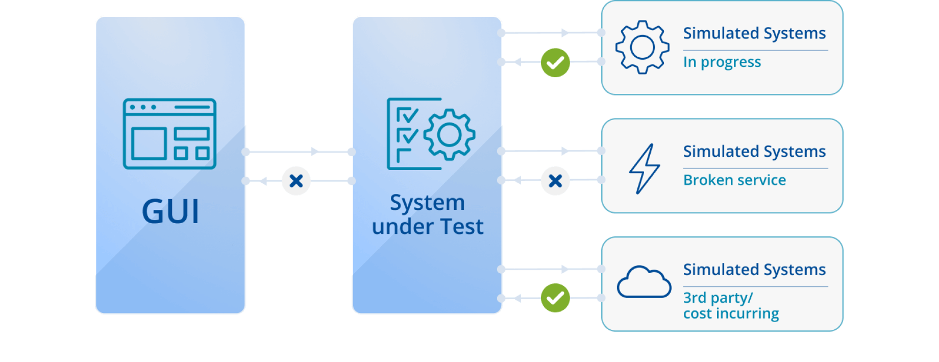 Simulieren Sie Microservices, die schwer zugänglich, kostenintensiv oder derzeit nicht verfügbar sind. Verlagern Sie Tests auf frühere Phasen, indem Sie realistische virtuelle Anwendungsdienste simulieren, bevor diese verfügbar sind.