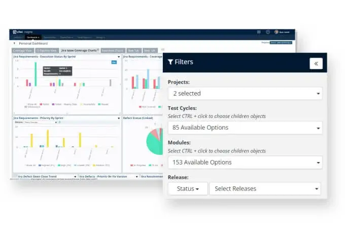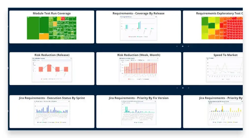 Utilisez les modèles de rapports prêts à l’emploi pour analyser la qualité, la couverture et la vitesse, ou créez des rapports et des tableaux de bord personnalisés pour rendre compte des indicateurs les plus importants pour votre entreprise. Créez des camemberts, des graphiques à barres, des diagrammes de dispersion, et bien plus encore.