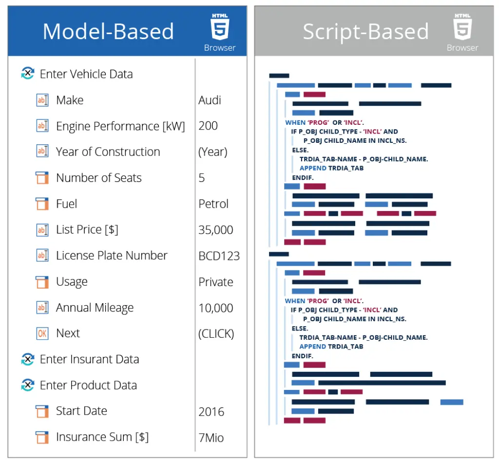 Instead of coding a test automation framework, you rapidly scan the application’s UI or APIs to create a business-readable automation model.