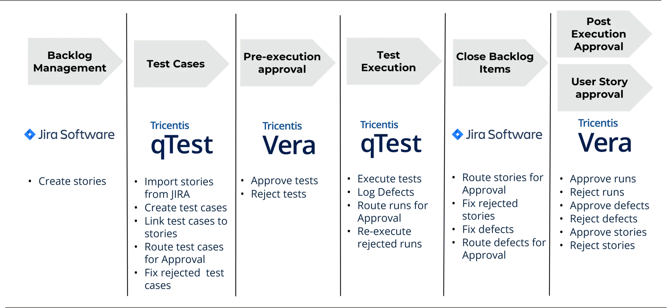 This tight integration allows Vera to control Jira and qTest data while standardizing approval lifecycles, all without restricting core functionality or requiring customization