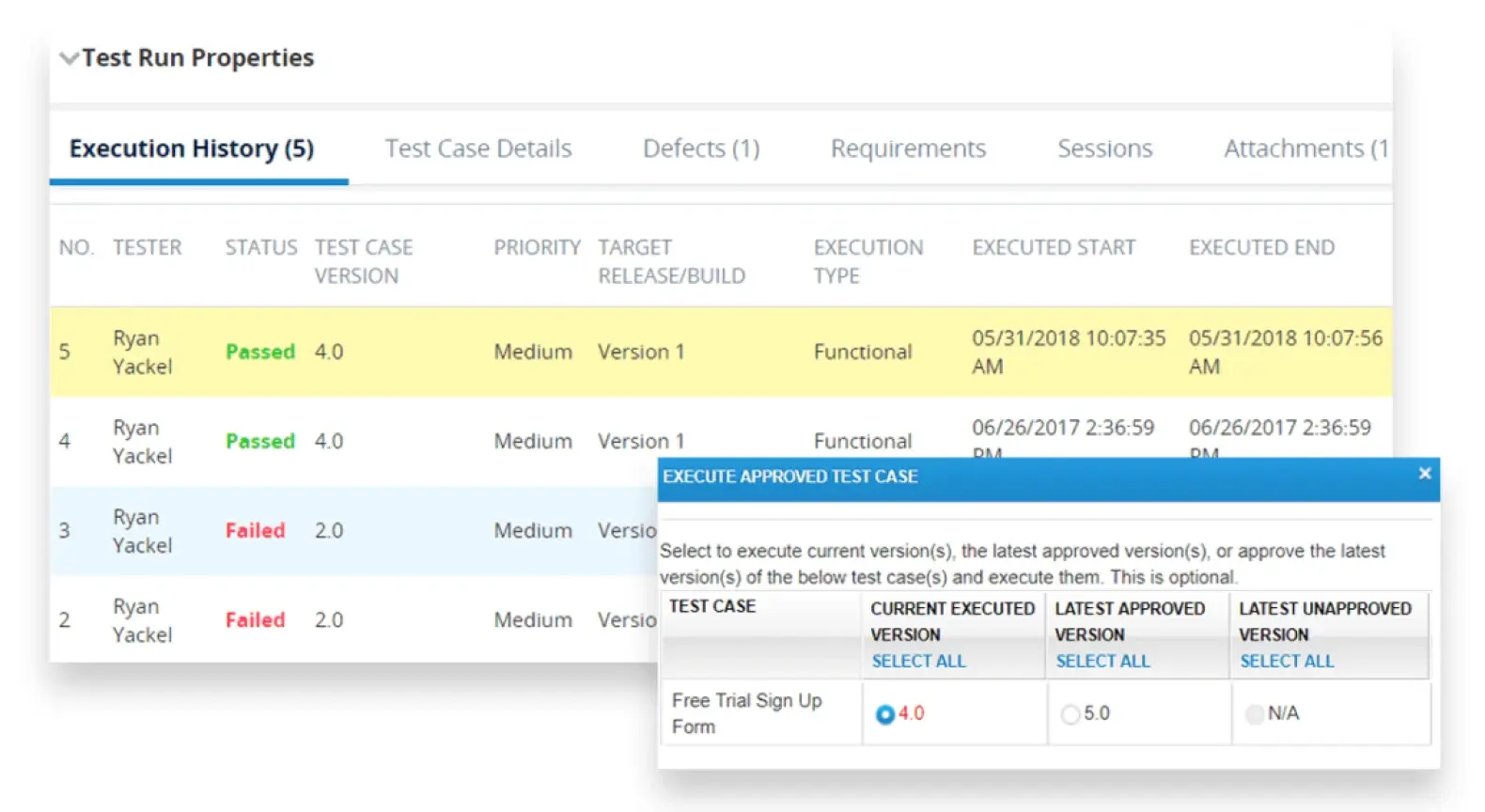 qTest Manager provides an intuitive experience for test execution. With qTest, you can plan, assign, and execute your tests with confidence. This offers visibility into your entire lifecycle across projects, builds, cycles, suites, and more.
