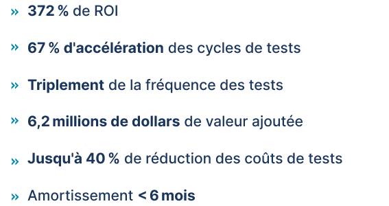 Forrester Consulting a mené une étude Total Economic Impact™ (TEI) afin d’évaluer le retour sur investissement du déploiement de Tricentis pour les tests des applications Oracle. Après s’être entretenu avec des décideurs utilisant les solutions Tricentis, Forrester a constaté que les entreprises avaient accéléré leurs cycles de test, augmenté le volume d’exécution des tests et élargi la couverture de l’automatisation sur l’ensemble des processus métier Oracle stratégiques.