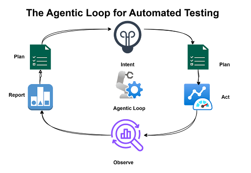 TL;DR: Agentic testing follows a loop where intent is defined, actions are planned, execution is performed, and results are adapted and reported. The agent observes changes and adjusts paths rather than stopping on unexpected UI behavior.