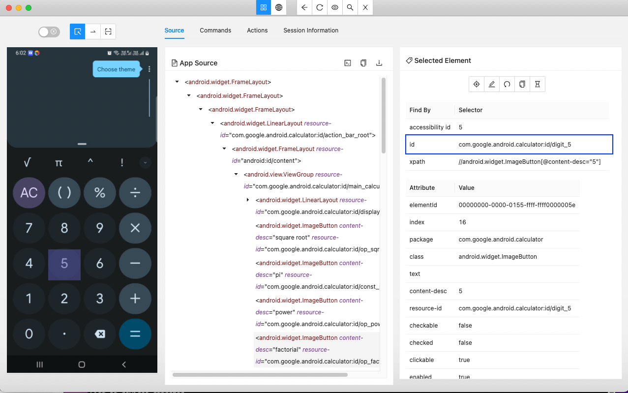 Now, the code to find this by ID (our locator strategy) will be below. Here, we’re using the findElement method of Selenium/Appium related to the number 5 by passing its ID.