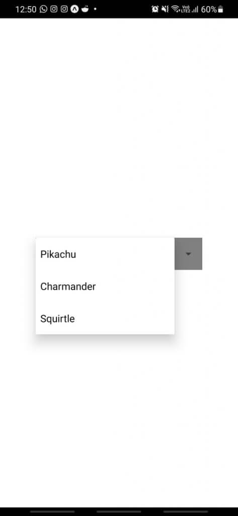 If you check your app now, you’ll only see a small drop-down arrow on the screen. This is because, by default, you need to set some width to your picker. Let’s use this opportunity to also style the picker.