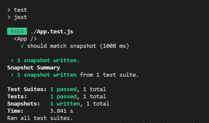 Great! You’re good to go now. Let’s run our snapshot test by running the following: