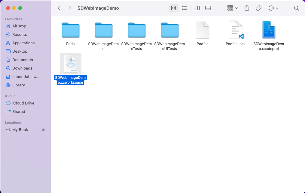 Now you should see a new SDWebImageDemo.xcworkspace file in the explorer. You need to open this in Xcode to use SDWebImage.