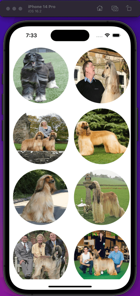 Run the app, and you should see some nice dog images. When you scroll the iPhone screen, you should see the placeholder empty-image for a moment before the image loads.