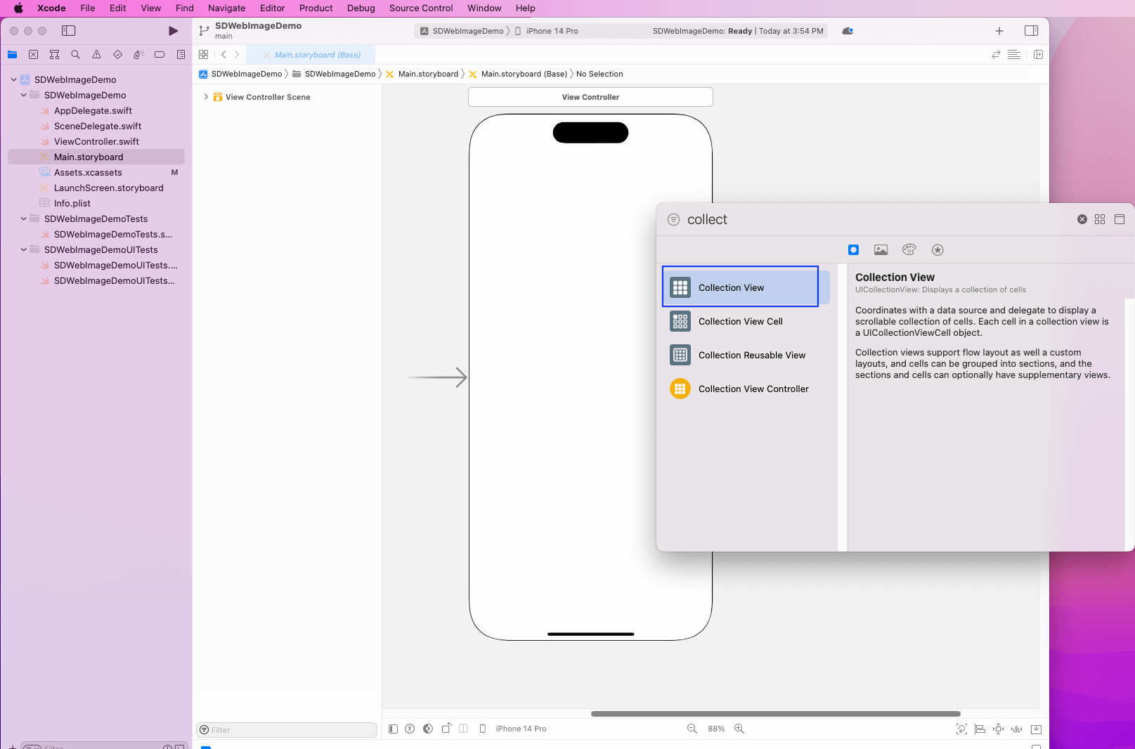 Search for “collection” and drag Collection View to the iPhone image.