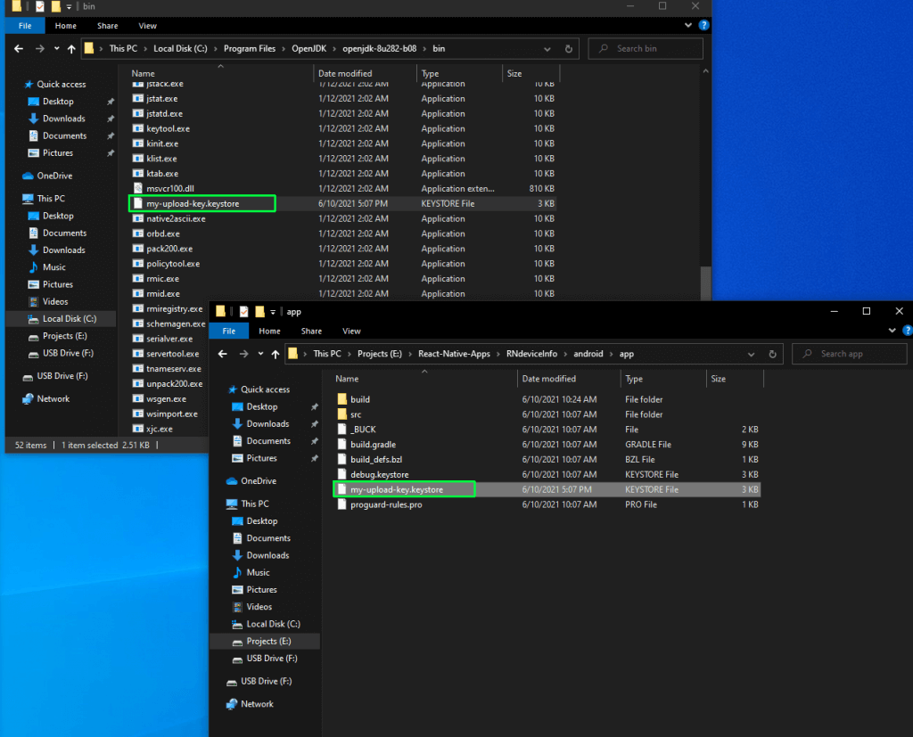 Once the above command is complete, we’ll get a file my-upload-key.keystore in the same directory. We need to copy this file and put it in the android/app folder of our application.