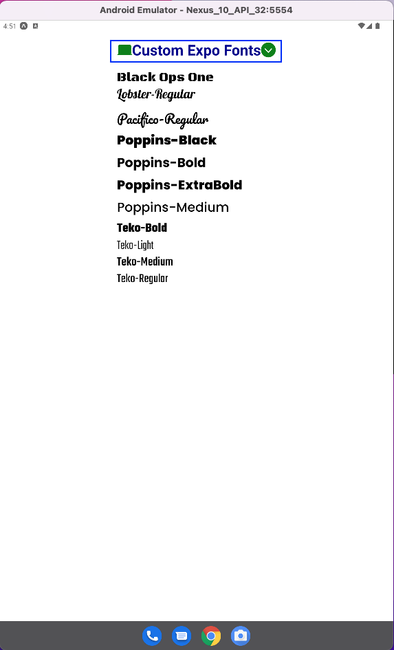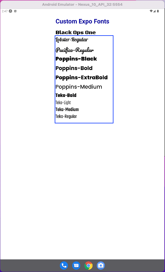 Now we will see all these new fonts in our Android emulator.