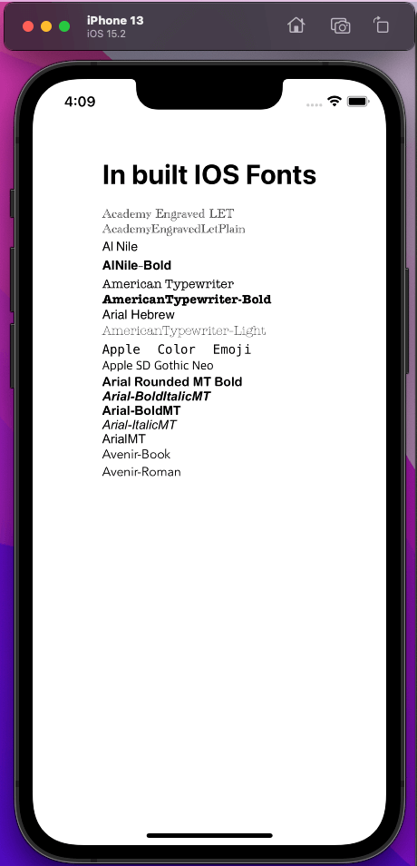 Built-In iOS fonts