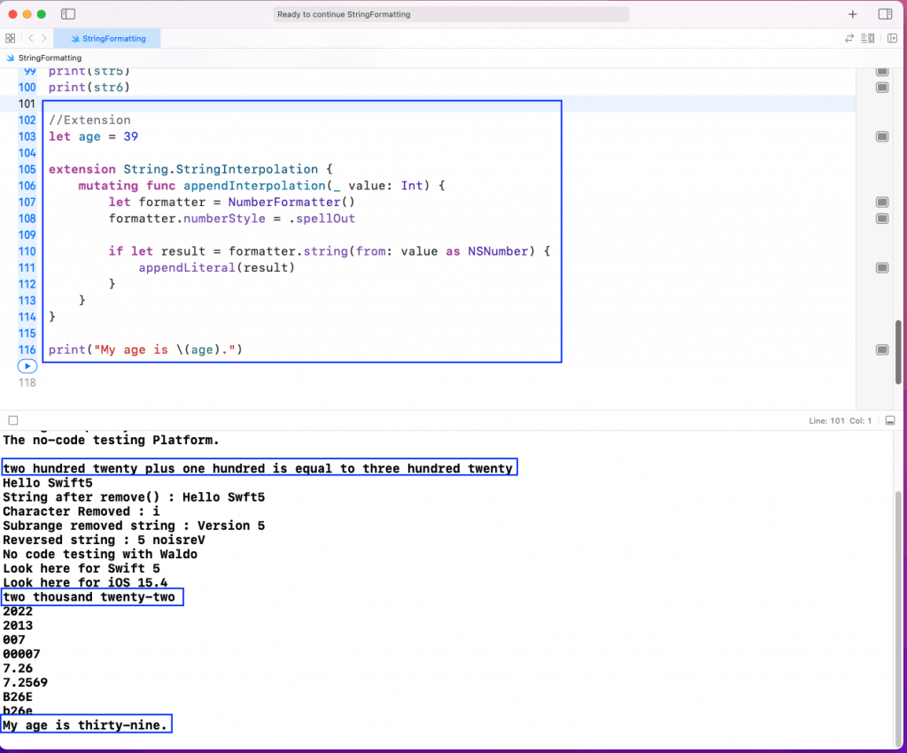 We can also extend the functionality of string in Swift 5 through Extension. Suppose, in our program, we want the integers to be spelled out. For example, 20 should be written as twenty.