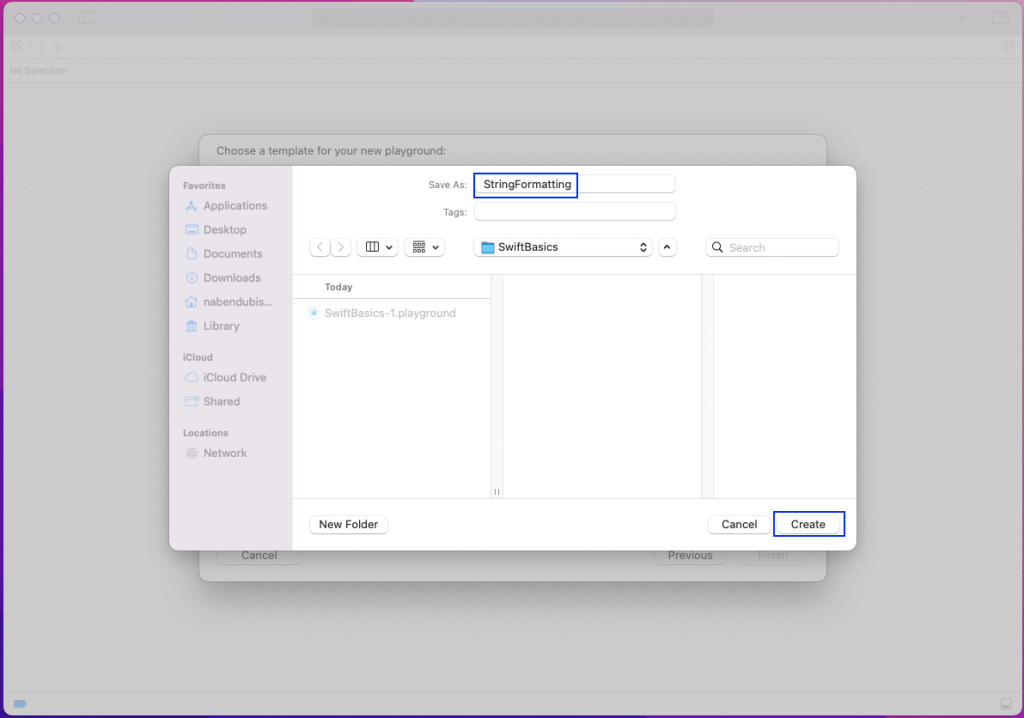 Now we need to give the playground a name. So we’ll give it the name StringFormatting. After that, click on the Create button.