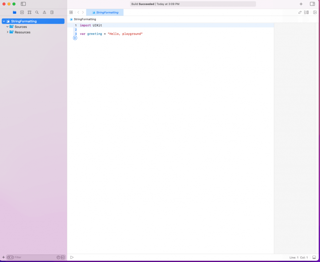 Finally, we’ll get the playground in which we’ll write the code to format the string.