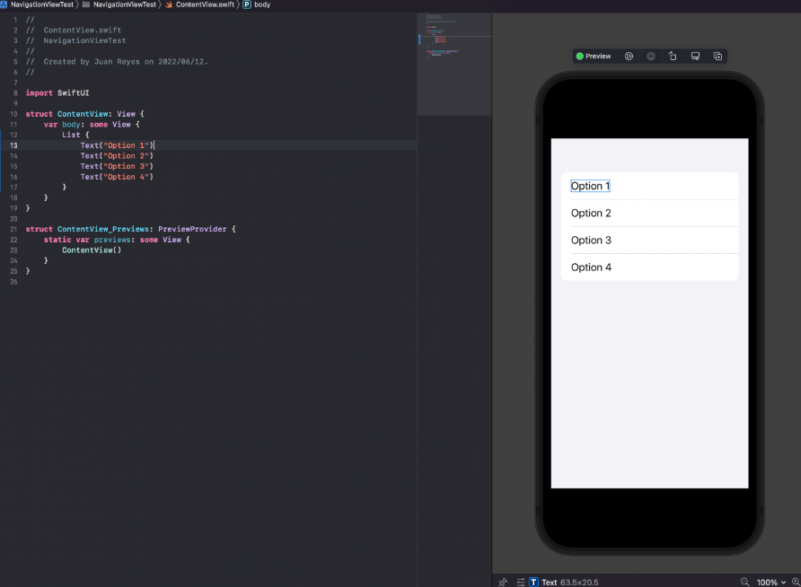 Again, it’s a straightforward task. All you have to do is declare a @State variable on the destination class and pass it on the parent class invocation. Make sure that you also specify a default value for this variable on the preview constructor of the destination class at the bottom.