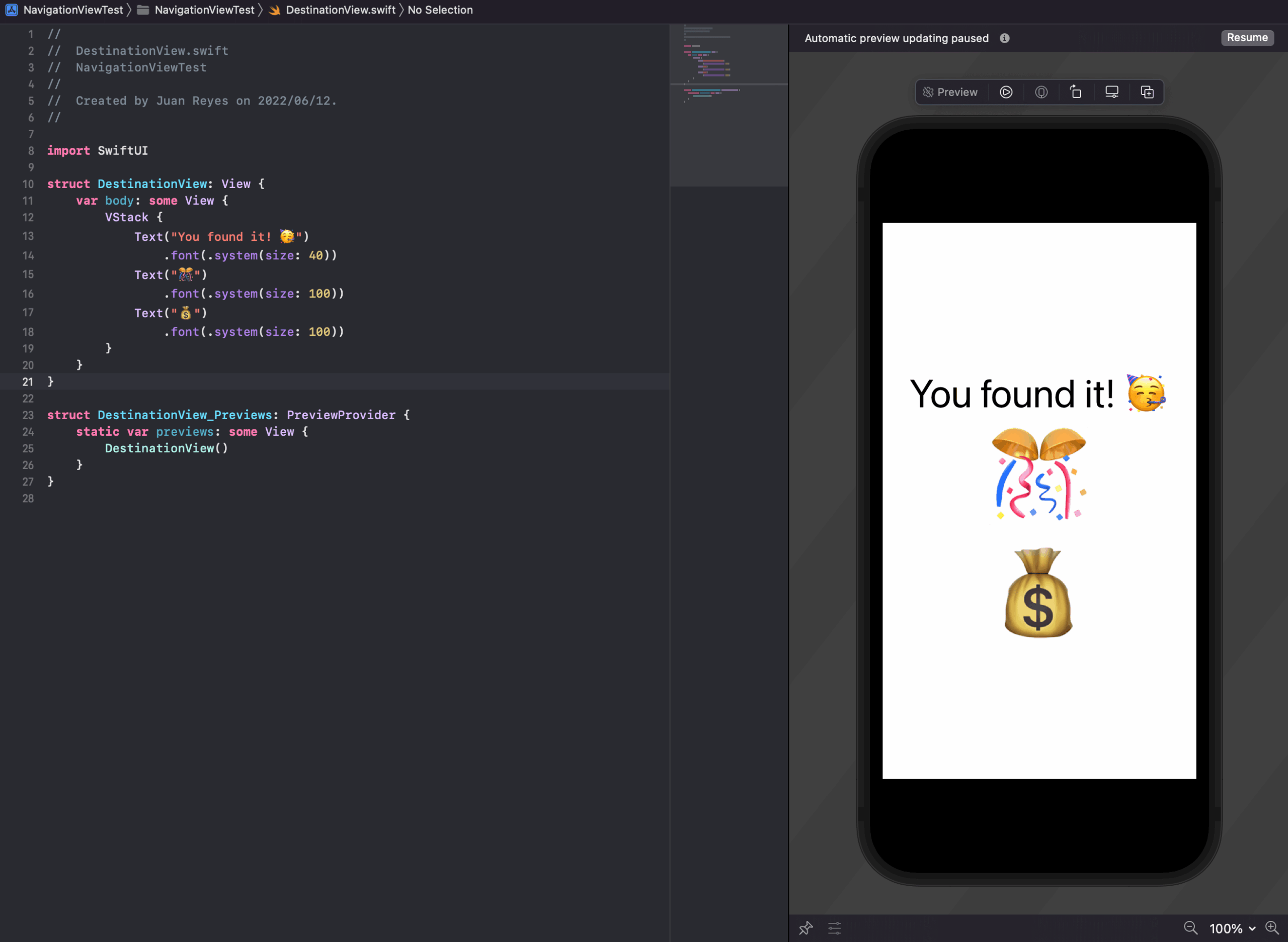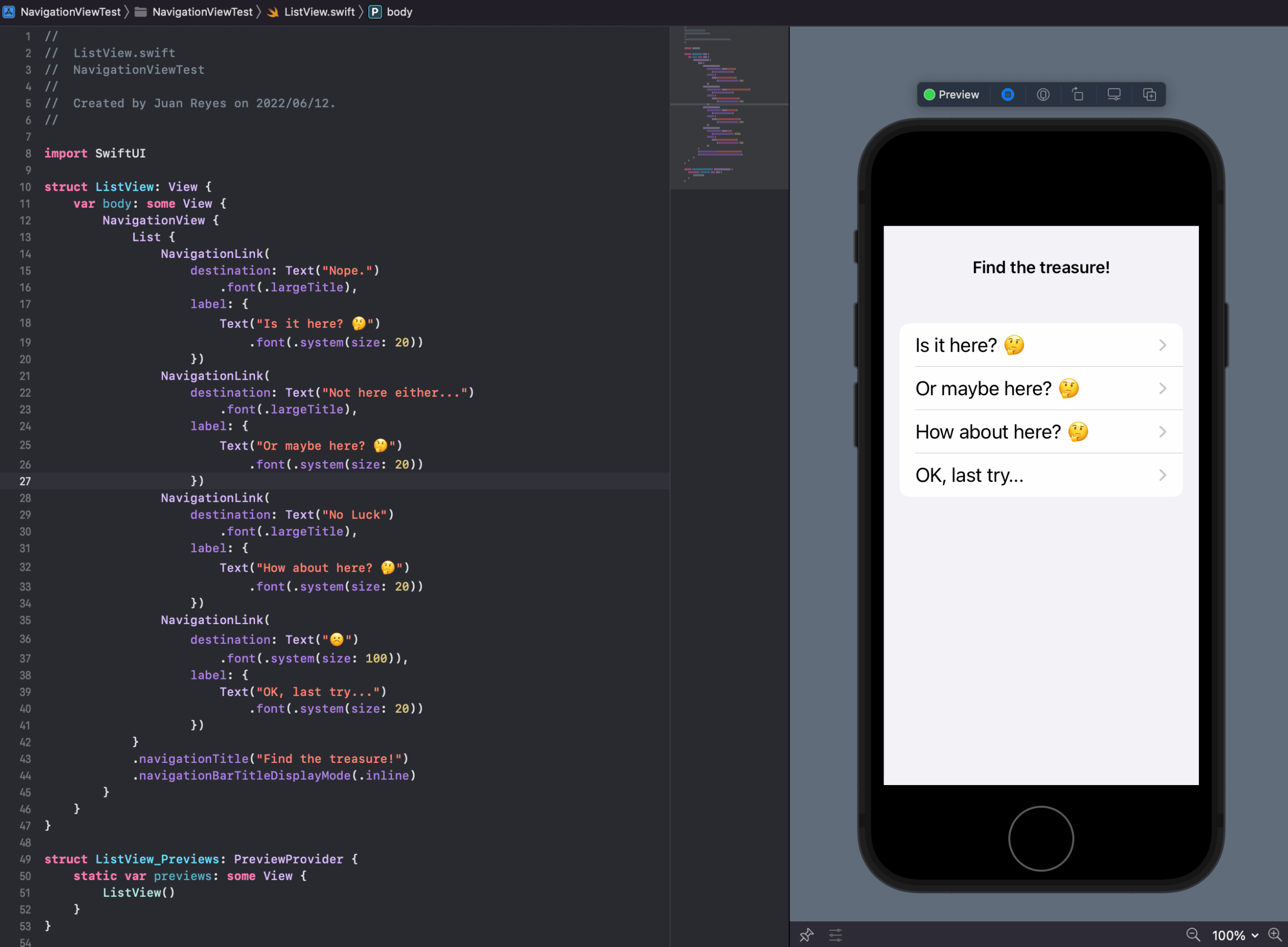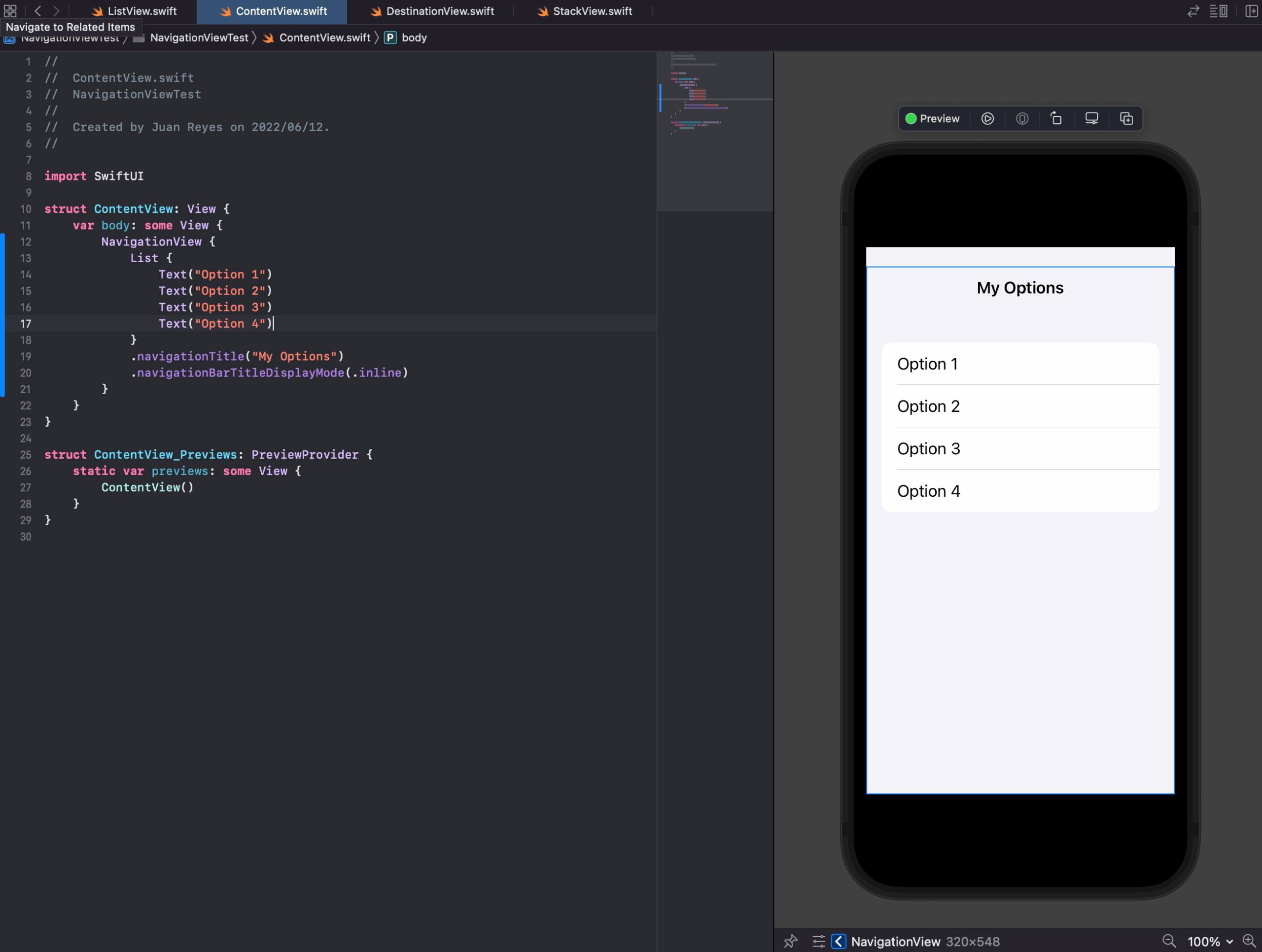 Well, thankfully, SwiftUI makes it dead simple to navigate between files. All you have to do is reference it in the destination, and the NavigationView will handle it for you.