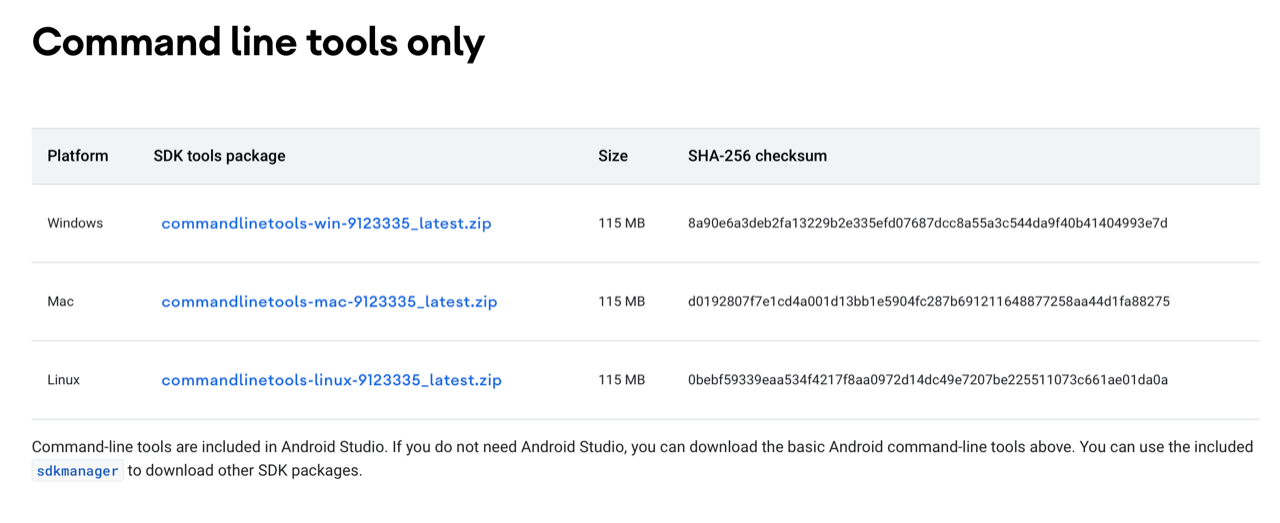 Next, download the command line tools based on your machine OS and run the installation. Additionally, download the platform-tools files from here.
