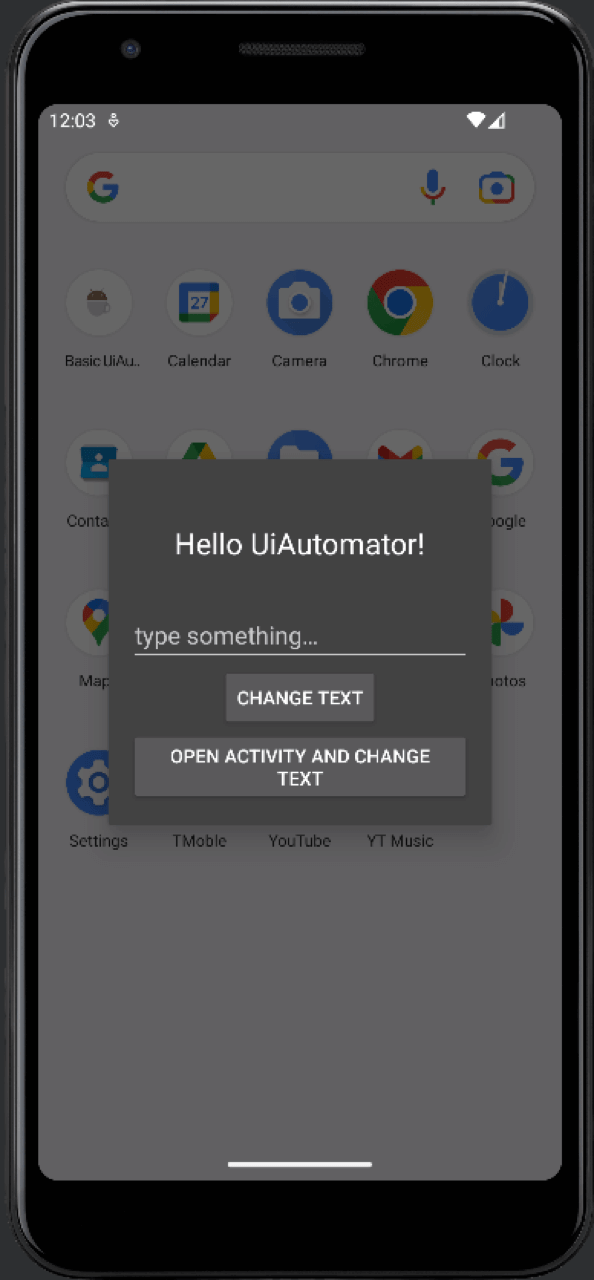 Once you have downloaded the project, go to the uiautomator directory and open it on Android Studio. Within this directory, there’s a BasicSample project that contains a simple application that displays an alert popup with a textbox and two buttons to change the title of the popup.