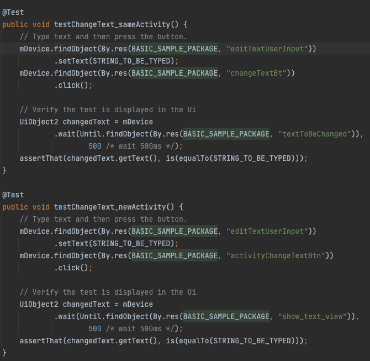 The first step to testing your mobile application is to create a test class. In this case, we will use the Android testing samples provided by the team at Google to illustrate how to implement the automated test properly. You can find the repository on GitHub.