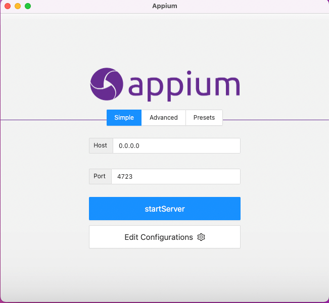 This will start a locally running Appium server on port 4723.